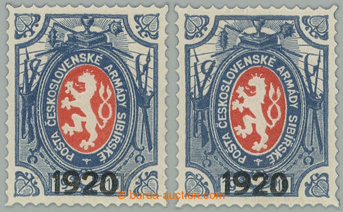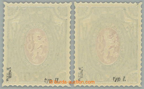 Philately. Pof.PP6, Charitable stamps 1R lion with black additional-printing 1920, comp. 2 pcs of, types I + II - small and big sabre; exp. Vrba