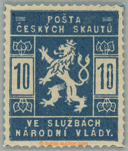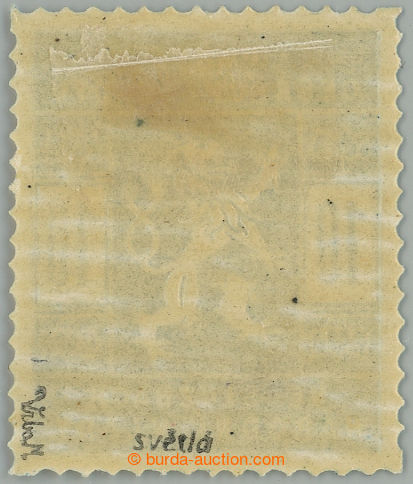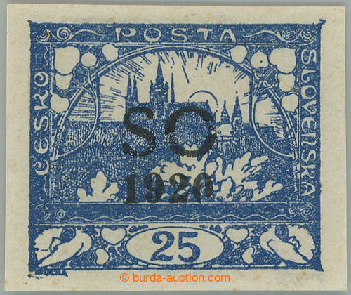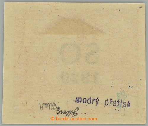 Philately. Pof.SO(8)N, unissued Hradcany 25h blue, imperforated, black Opt; label, exp. Vrba, Le, and commercial marks (Image) (Image2)