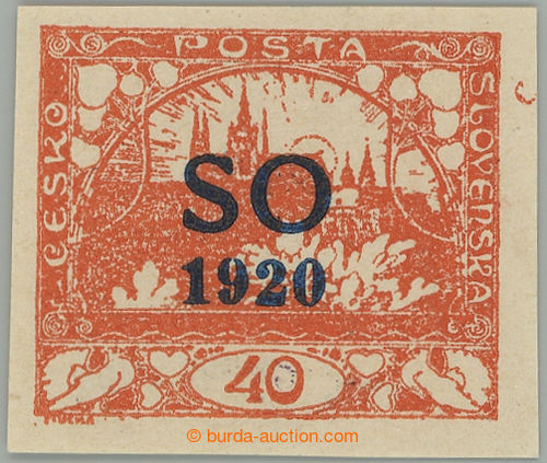 Philately. Pof.SO11ZT, Hradcany 40h orange, overprint trial printing in blue color, pos. 80/1; label, exp. Vrba, Gilbert (Image) (Image2)
