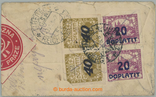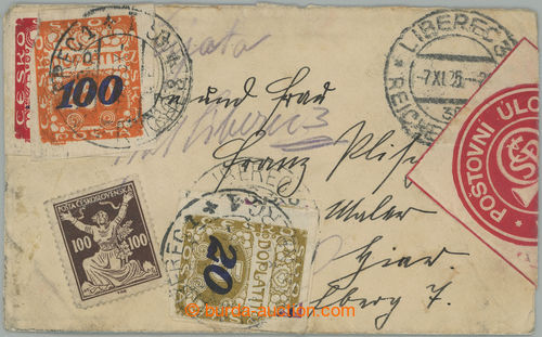 on/for LIBEREC 3, where was/were equipped Postage due stamps and orazitkovan, which/what was/were prelepeny Postage due stamps with CDS LIBEREC 1/ 4.12.25, stick-on label dead letter off.; nice good condition, rare and decorative entire (Image) (Image2)