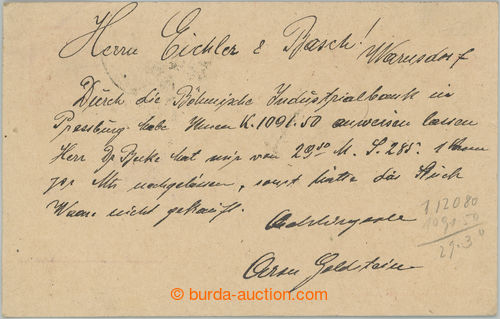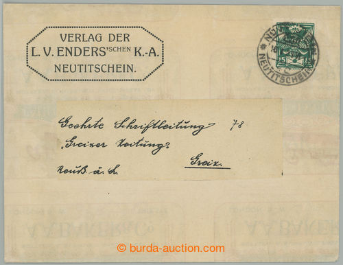 Philately. JAUERNIG - NIEDER LINDEWIESE 471/ 22.VII.19, Austrian forerunner cncl train post on/for commercial letter with Hradcany 25h blue; superb postal imprint, without defects (Image) (Image2)