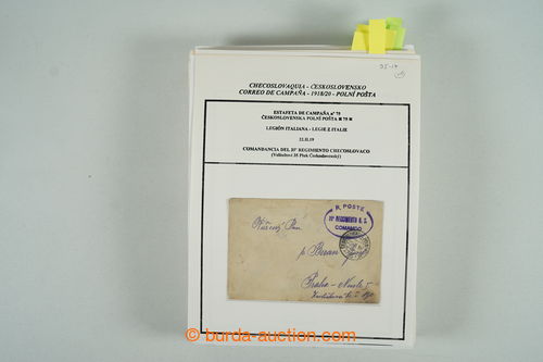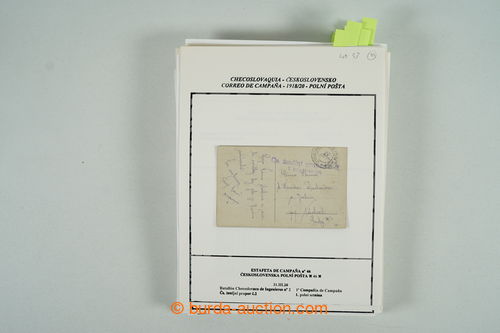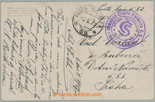 Philately. CZECHOSL. ZVeROLEKARSKY URAD (= office) / violet italsko-ceske military unit postmark, supplemented with cancel. POSTA MILITARE 52/ 6.5.19 with asterisks, legionary postcard sent from Bratislava to Prague; good