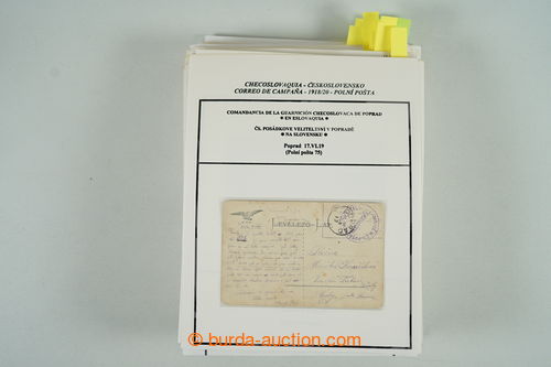 Philately. [COLLECTIONS] collection 170 pcs of Ppc, letters and cards with postmarks field post formations on a mission in Slovakia, divided according to numbers FP 5, 8, 10, 12, 22, 35, 38, 44, 46, 50 and 75, various uniquely