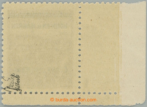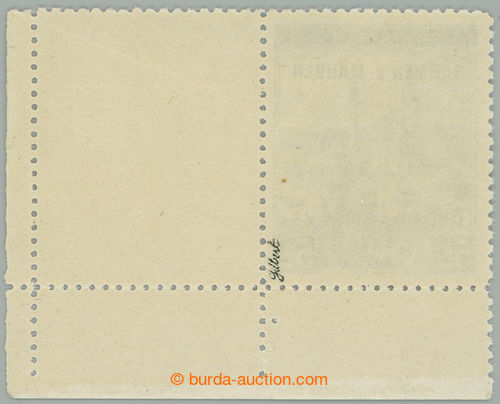 Philately. Pof.K19 plate number, Bratislava 10CZK, LR corner piece with coupon with plate number 1A and with register point; mint never hinged, exp. by Gilbert (Image) (Image2)