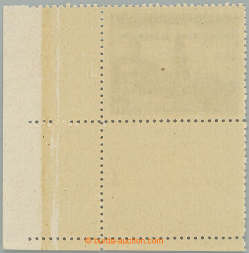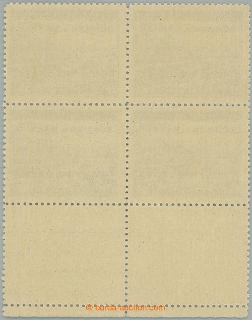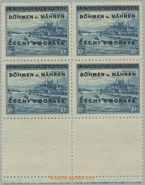 Philately. Pof.19KD, Bratislava 10CZK, block of four with 2 lower coupons and bottom margin; slightly povolena perf between stamp., otherwise mint never hinged (Image) (Image2)