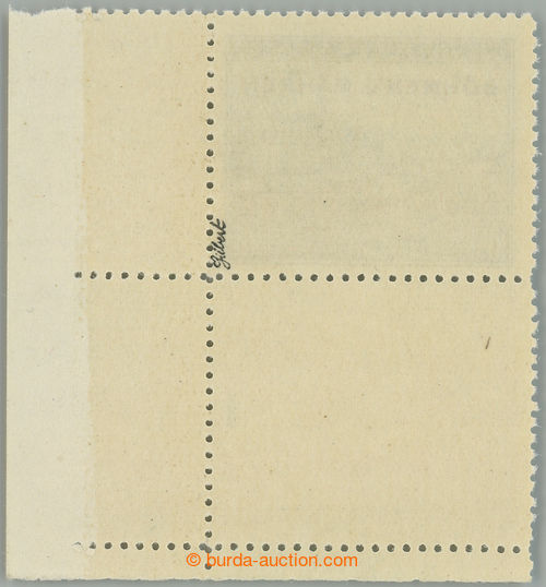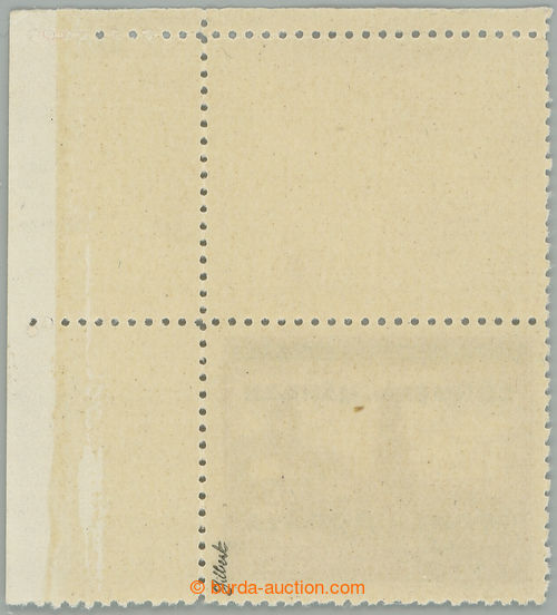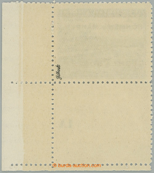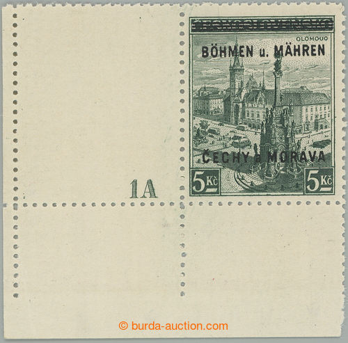 Philately. Pof.K18 plate number, Olomouc 5CZK, L the bottom corner piece with coupon with plate number 1A and register point; mint never hinged, exp. by Gilbert (Image) (Image2)