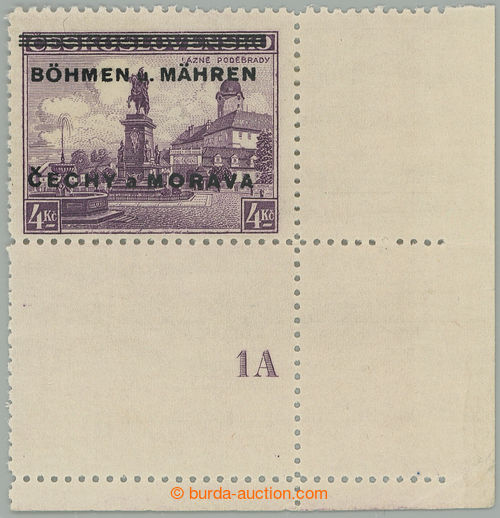 Philately. Pof.K17 plate number, Podebrady 4CZK, right the bottom corner stamp. with coupon and with plate number 1A; mint never hinged