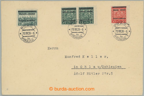 plate variety 100, CDS PRAGUE 1/ 15.XII.39; envelope open from 2 of adjacent sides (Image) (Image2)