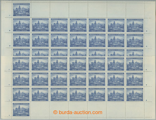 Philately. COUNTER SHEET / Pof.39, Landscape the first issue., Prague 10K, complete 100 stamps sheet with plate mark +; folded only in perforation, otherwise mint never hinged, rare complete sheets! (Image) (Image2)