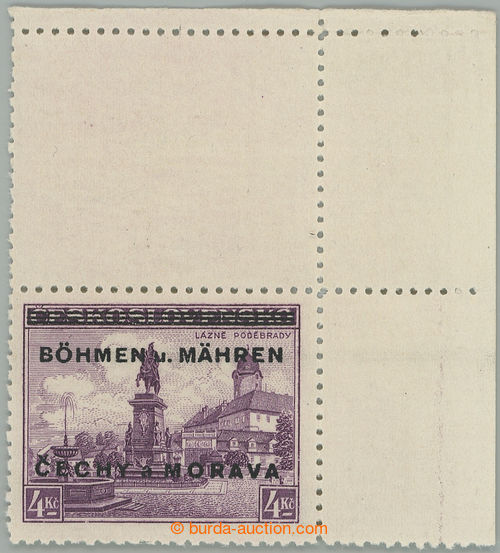 Philately. Pof.17KH, Podebrady 4CZK, UR corner piece with coupon; mint never hinged, grain in gum, exp. by Gilbert (Image) (Image2)