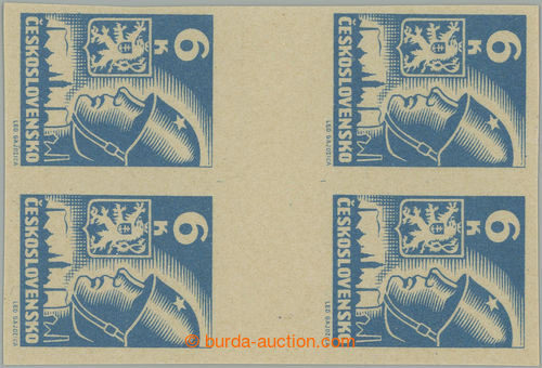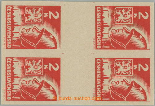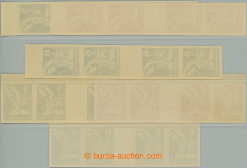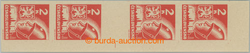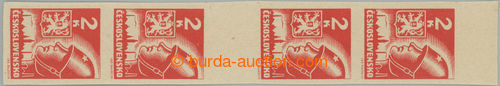 Philately. Pof.383-386 production flaw, Moscow, values 20h, 50h, 1 Koruna and 2 Koruna, stamp. with upper margin and omitted upper horiz. perf; mint never hinged, c.v.. 4.900CZK (Image) (Image2)