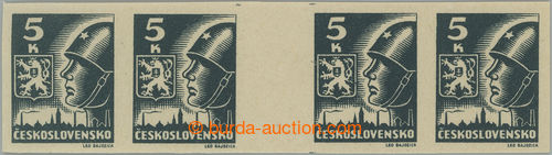 Philately. MEZIARSI / Pof.355a Mv(4), 5 Koruna grey-black, horiz. 4-stamp gutter.; R at top small tearing in margin outside picture stamp., otherwise mint never hinged, significant cernosedy shade! (Image) (Image2)