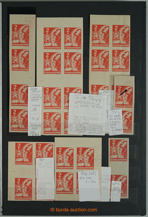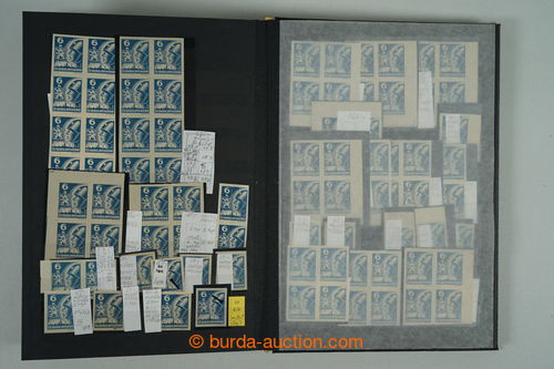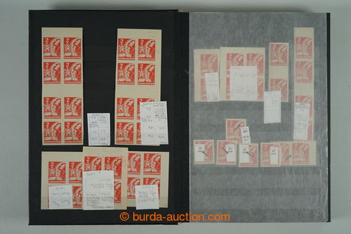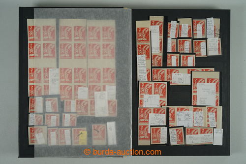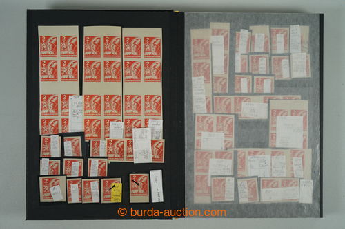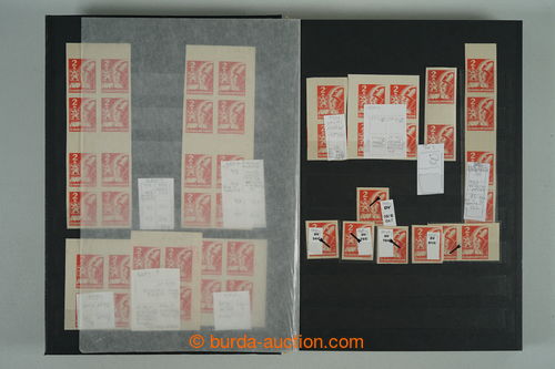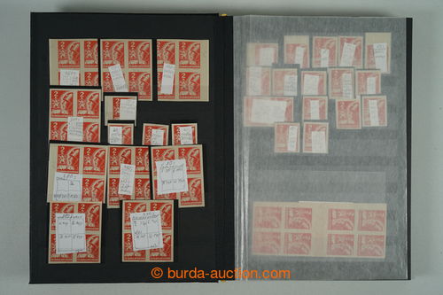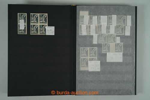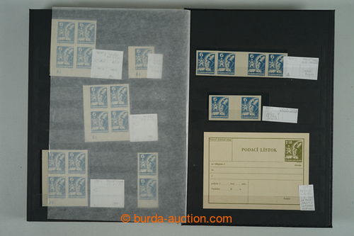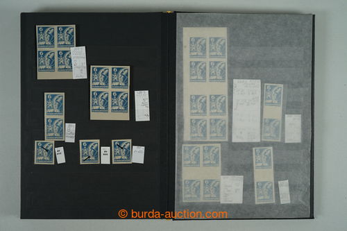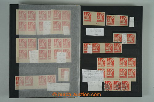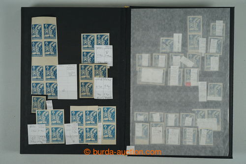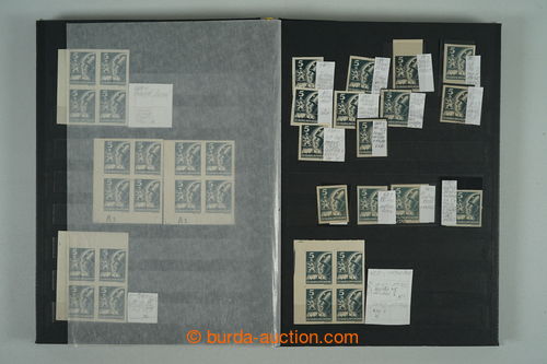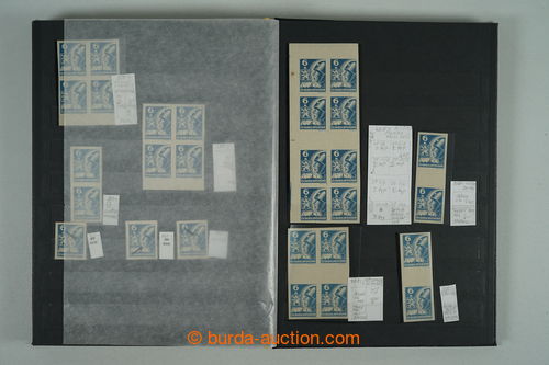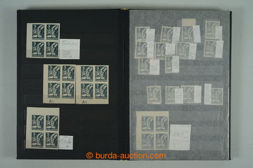Philately. [COLLECTIONS] PRILBA / specialized collection Pof.354-356, lot of stamp., stripe and blocks, gutter, with identified pos., plate variety, shades, corner stmp and blocks with plate mark, production defects etc..; various