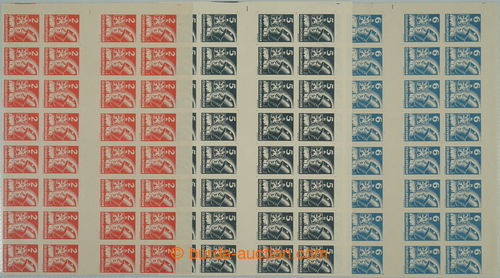Philately. MEZIARSI / Pof.354-356Ms(4), 2K-6K, complete set blocks 8 joined vertical 4-stamp gutter., always blocks with R margin sheet; sporadically minor gum fault and minor faults, by/on/at 6 Koruna interesting zesvetleni shade