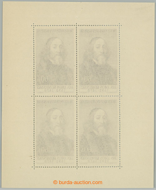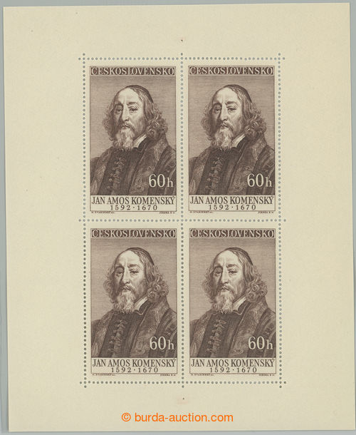 Philately. Pof.PL930 III, Comenius 60h, type III., complete counter sheet with 2 cut notches; mint never hinged, other rarest type