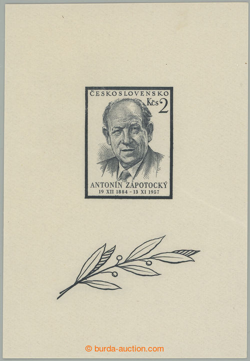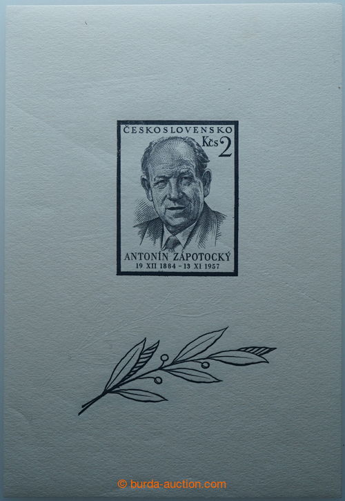 Philately. Pof.A967 II production flaw, miniature sheet Zapotocky 2Kcs, type II - berry production flaw - double impression, from that 1x as VYRAZNe SIKMO POSUNUTY SLEPOTISK (so-called. albino); several usual production vynechavek