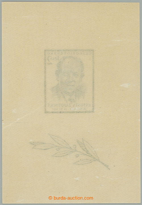 Philately. PLATE PROOF Pof.927, III. congress JZD 30h, proof print incomplete gravure in/at different brown color on/for yellowy smooth paper without gum; by hand written notice in margin, exp. by Karasek (Image) (Image2)