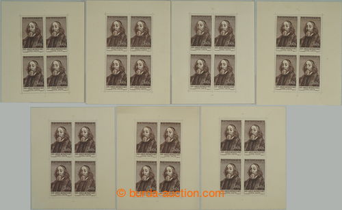 Philately. Pof.PL930, Comenius 60h, complete set 6 types, incl. sought PB II. also III. type, V. type 2x (various plate); mint never hinged, levny VI. type light bands in gum, overall very fine, c.v.. 7.300Kc (Image)