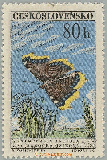 Philately. Pof.1222 II, Butterflies 80h, type II - through engraved right/genuine frame, in addition with plate variety 1/A - horiz. line below tykadlem; mint never hinged, sought (Image) (Image2)