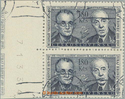 Philately. Pof.1239 plate variety, Personalities 1,80Kcs, vertical L marginal Pr with print molette in L margin, distance between print molette is smaller then distance between stamp., in this form still on/for unstamped stamp.
