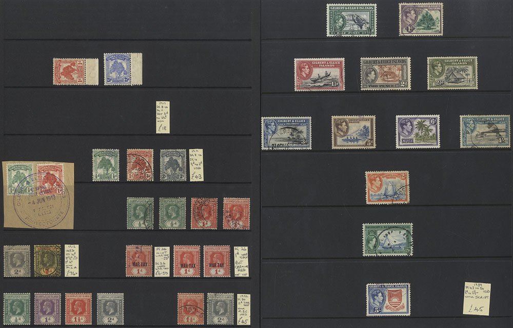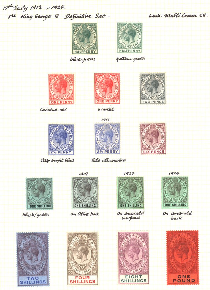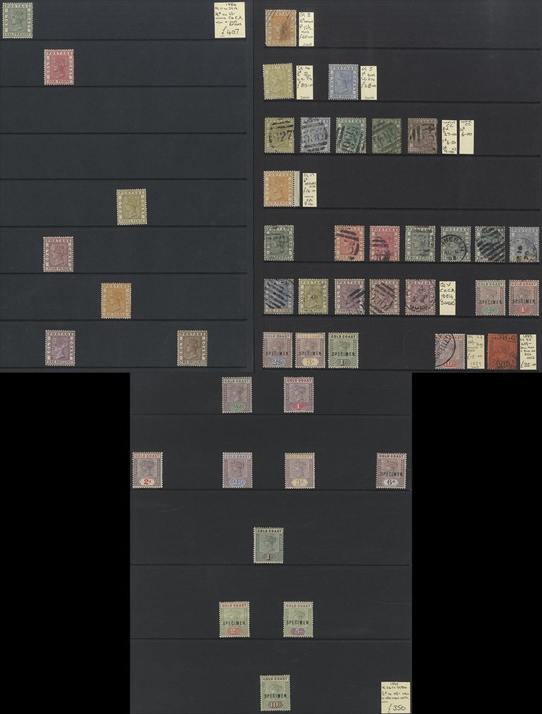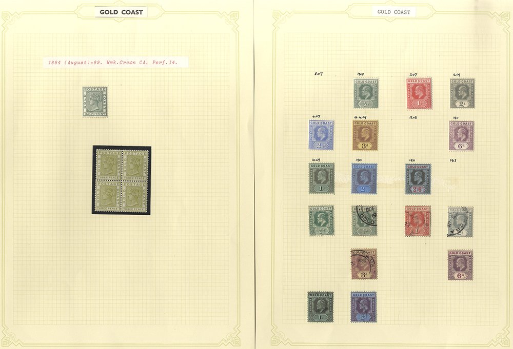 1876-1921 small range on pages incl. 1876 ½d and 1889 1d on 6d U, 1884 3d in block of four M, 1907 to 2/6d M, 1913 issue incl. 5s Die 1 & 2 plus 10s shades (2). (Image)