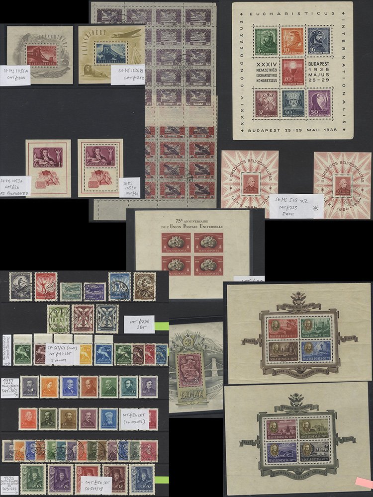 £1750), 1874-80, 1881-90, 1888-98, 1898-99 envelope issues, 1900-04 to 1913-16 Turul issues to 5k, 1913 Relief set M & U (Cat. £300), 1914 & 1915-15 Charity sets M (Cat. £235), later defins, Republic issues with blocks, inverted ovpts, Dues,