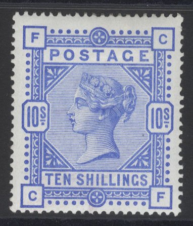 1883-84 10s ultramarine, white paper, M (hinge remnant) centred slightly to bottom, fine, SG.183. (1) Cat. £2250 (Image)