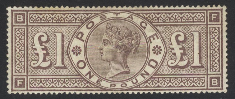 1884 Wmk Crowns £1 brown-lilac, M (brownish patchy gum, suspicion of vertical crease), good, SG.185. (1) Cat. £28,000, tiny red Senf - Leipzig expertisation mark on reverse. (Image)
