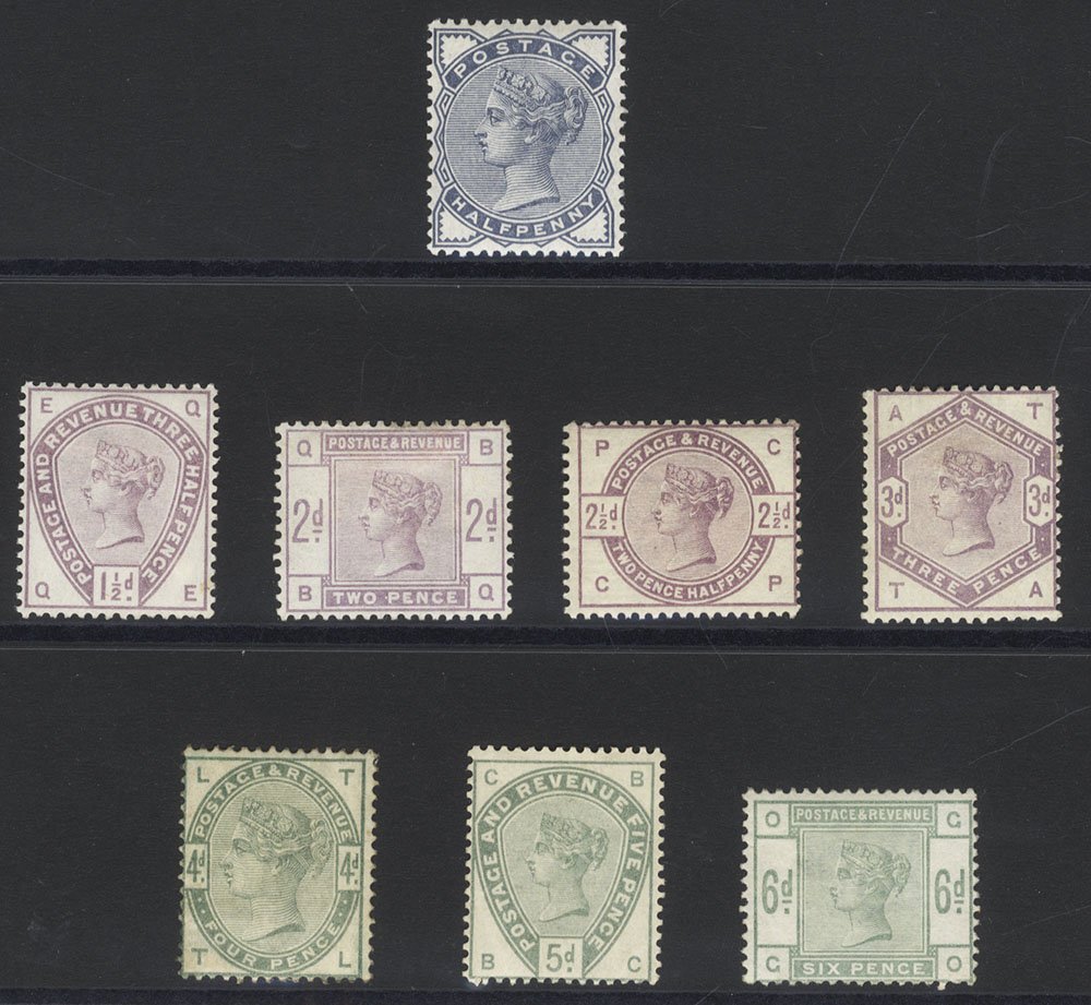 1883 lilac & greens ½d to 3d M, 4d gum disturbed, 5d M, 6d unused with gum traces, bright original colours, fine appearances. (8) SG.187/194, Cat. £2600. (Image)