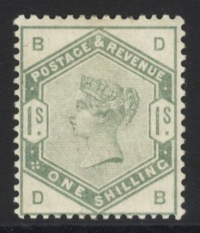1883 1s dull green, M (good even colour), fine. (1) SG.196, Cat. £1600. (Image)