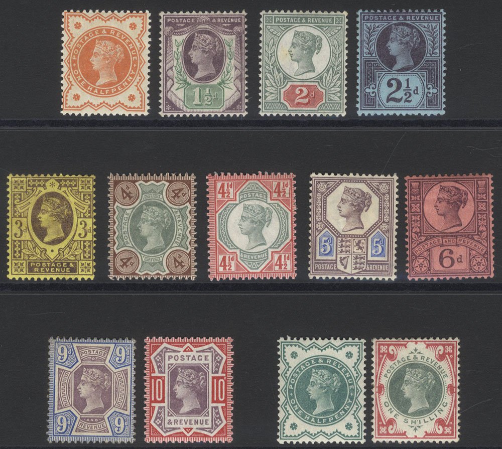 1887 Jubilee ½d to 10d, 1900 ½d & 1s, M, good to fine. (13) SG.197-210, 213, 214. (Image)