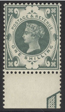 1887-92 1s grey-green (deep shade) UM, bottom marginal, VF. (1) SG.211, Spec.K40. (2) Cat. £400 (Image)