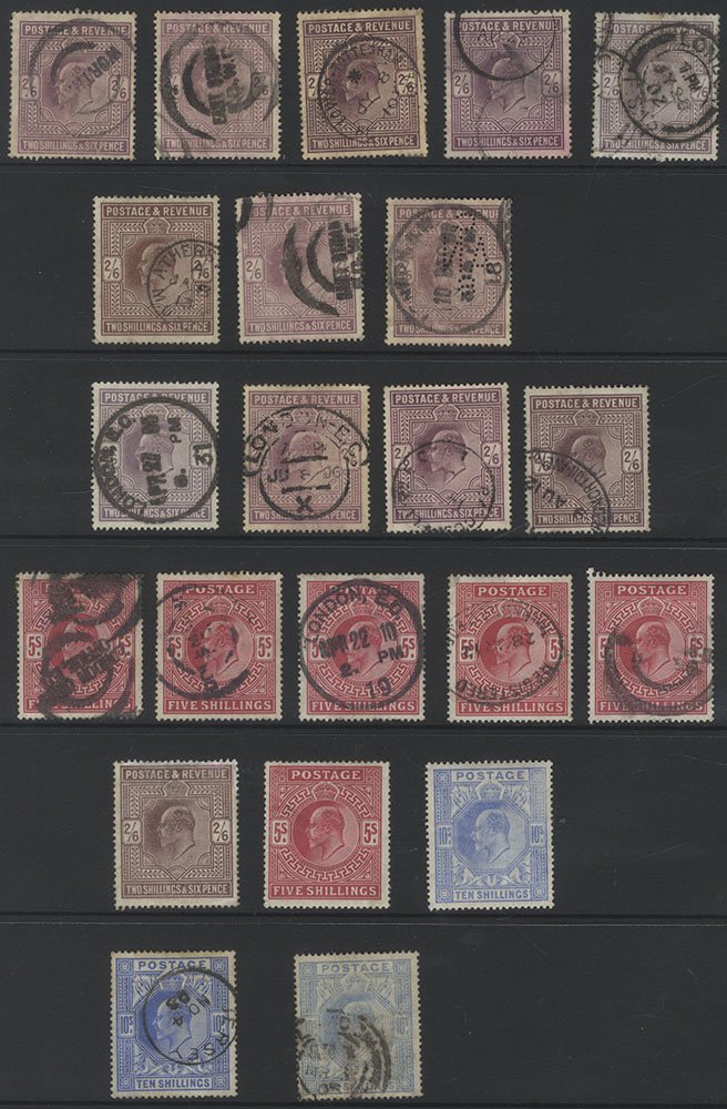 1902-12 High Values U, 2/6d (12), 5s (5) & 10s (2) - mixed grades of mainly poor condition, also 2/6d, 5s & 10s M, faults. (22)