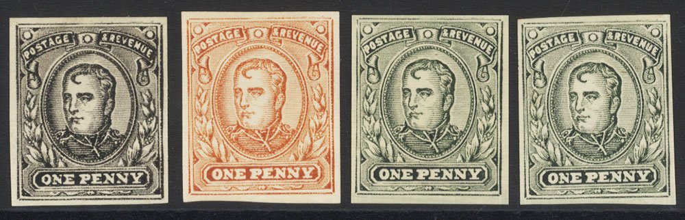 1902 Anti-Boer War Napoleon Head One Penny Essay (4) in black, orange & green (2x slightly diff shades). (4) (Image)