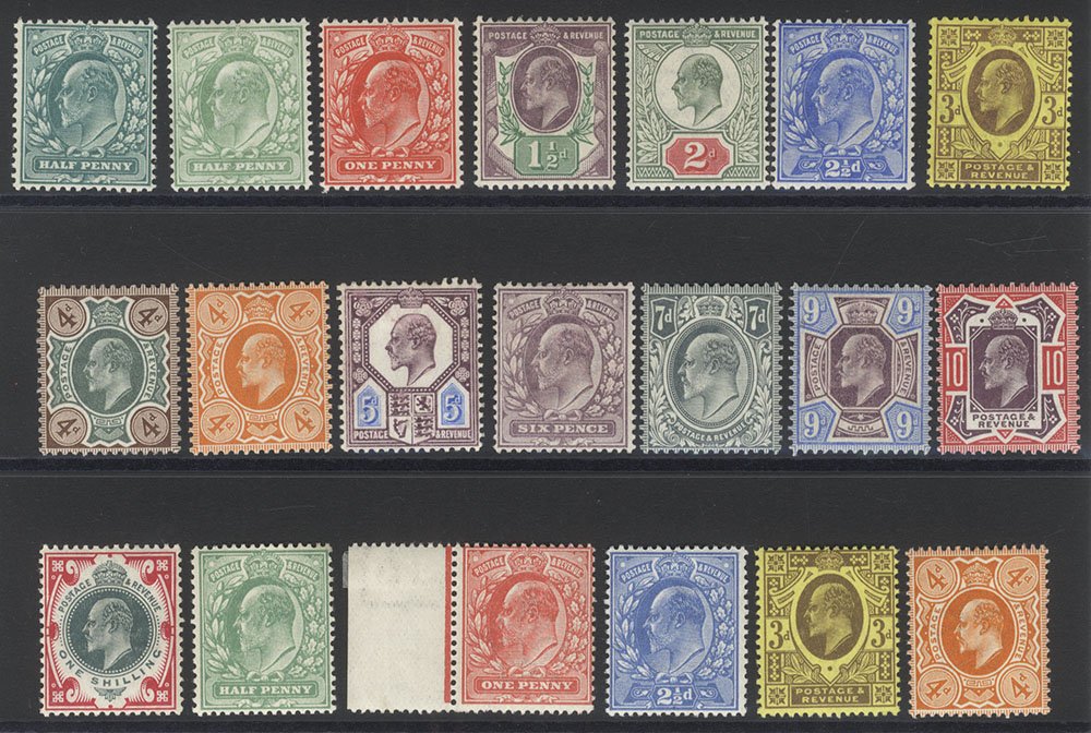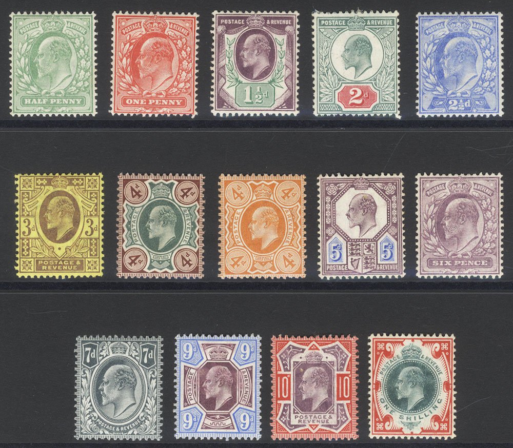 1902-10 DLR ½d to 1s Basic set, M - generally fine, from SG.215/257. (Image)