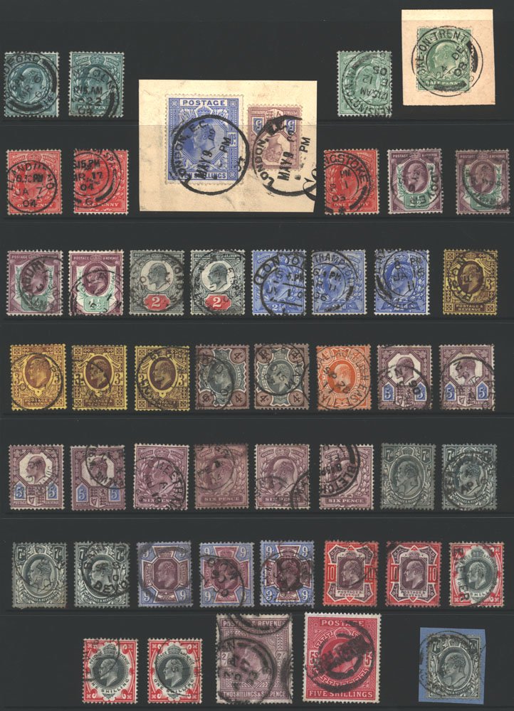 1902 DLR good to VFU range of each value to 10s, several with c.d.s cancels, comprises ½d (4), 1d (3), 1½d (4), 2d (2), 2½d (3), 3d (4), 4d (3), 5d (4), 6d (4), 7d (4), 9d (3), 10d (2), 1s (3), 2/6d, 5s, also piece with