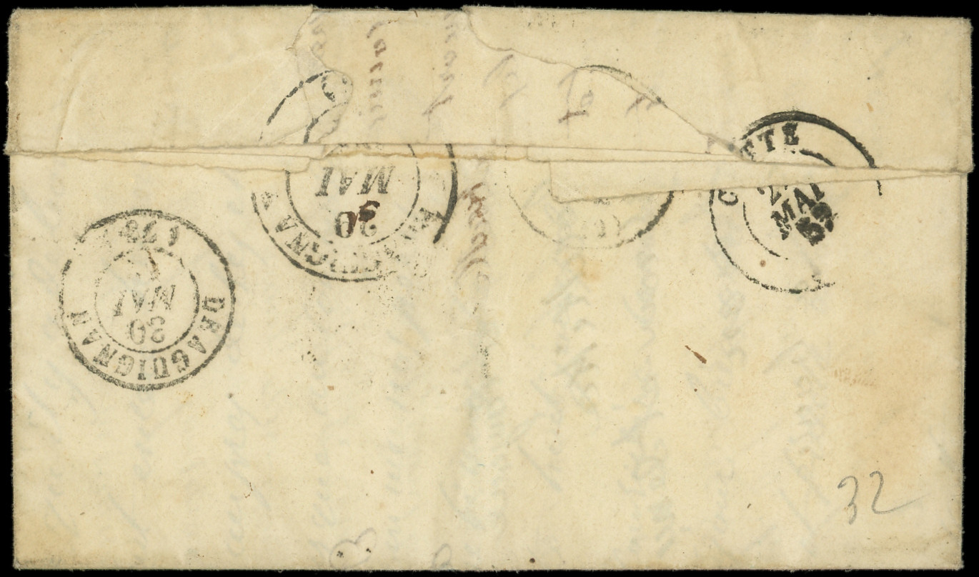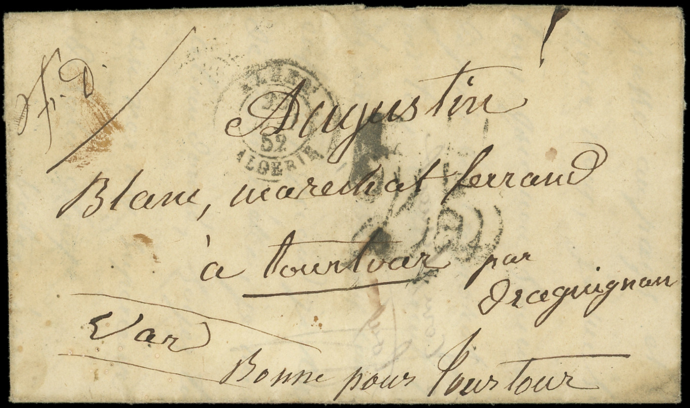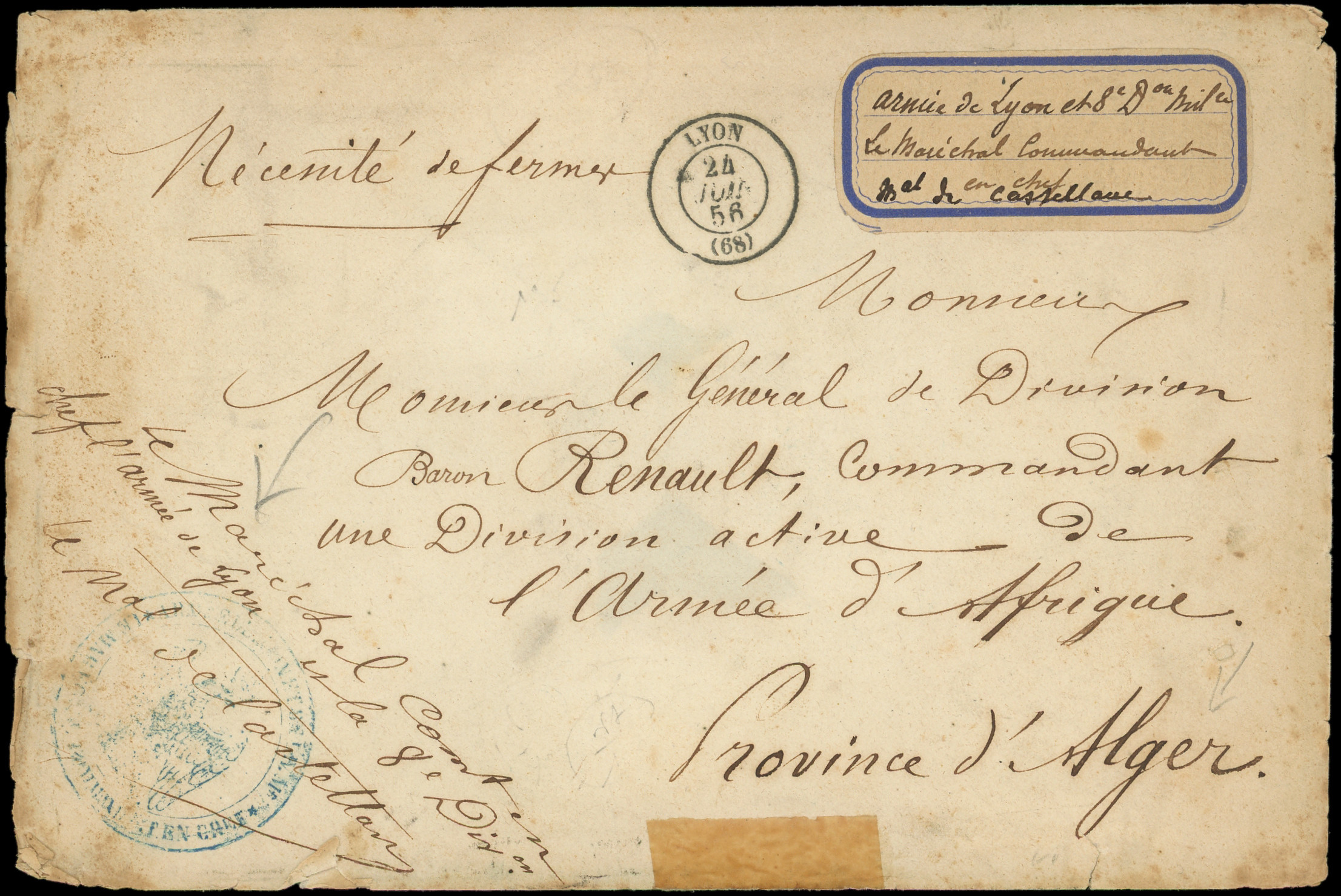 s. Env. du Mal de CASTELLANE, Commandant de l'Armée de Lyon, Aide de Camp de Napoléon 1er. Adressée à un Commandant de l'Armée d'Afrique, arr. Alger 27/6, TB (Image) (Image2)