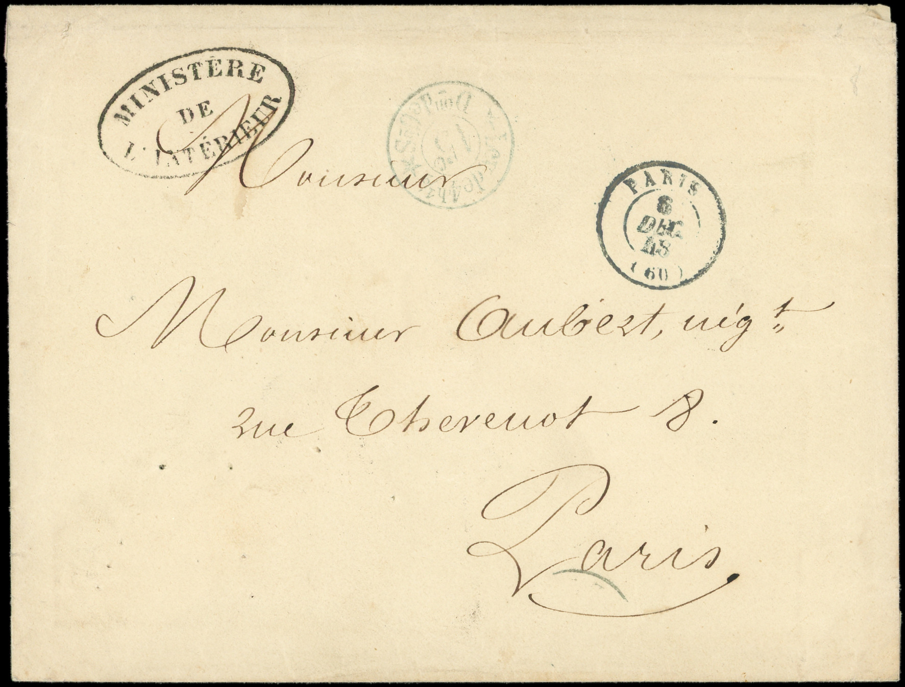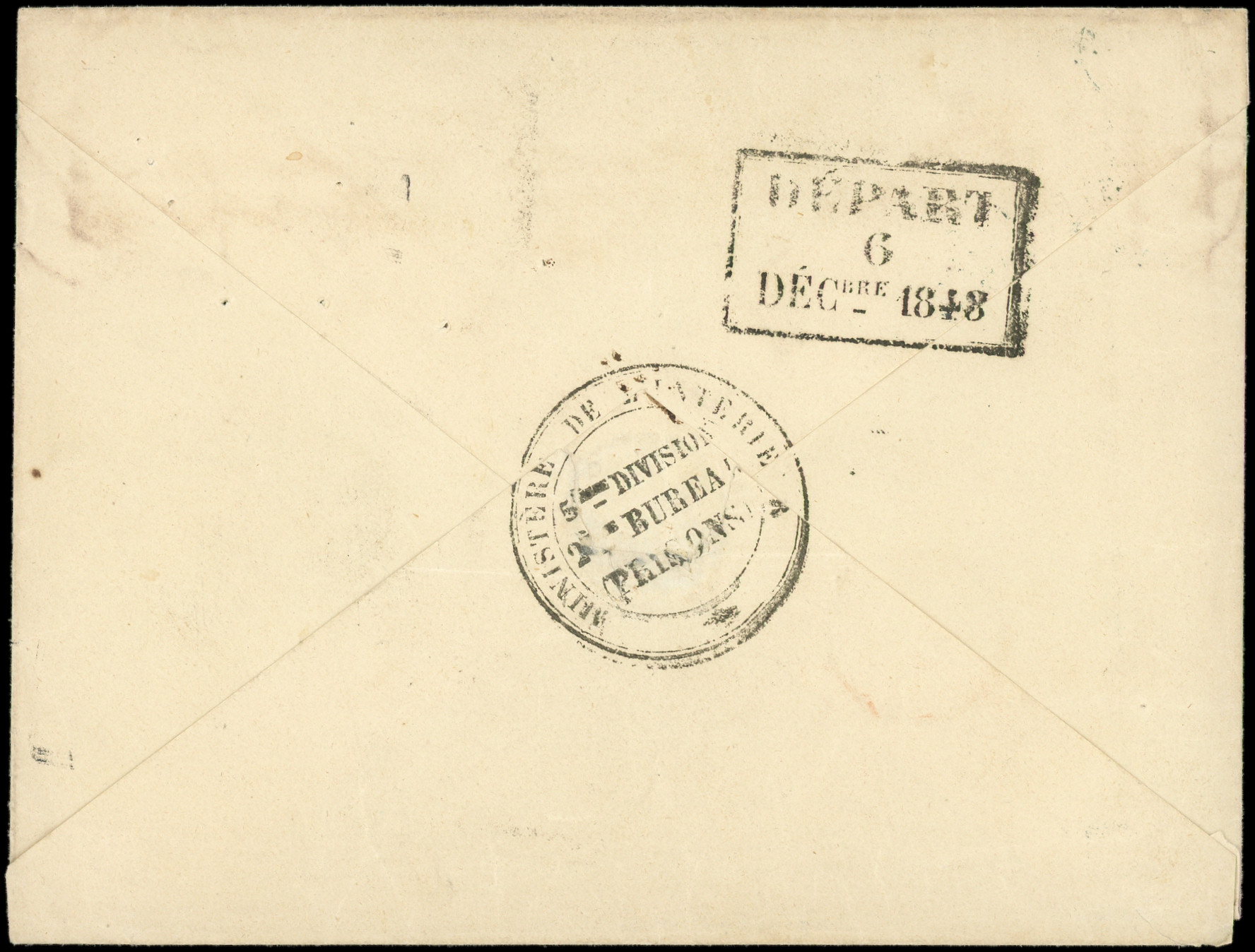 6/12/48 sur Env., cachet MINISTERE DE L'INTERIEUR, cachet de Port Dû 15c., au verso cachet 5ème Division/2ème Bureau/(Prisons), TB (Image) (Image2)