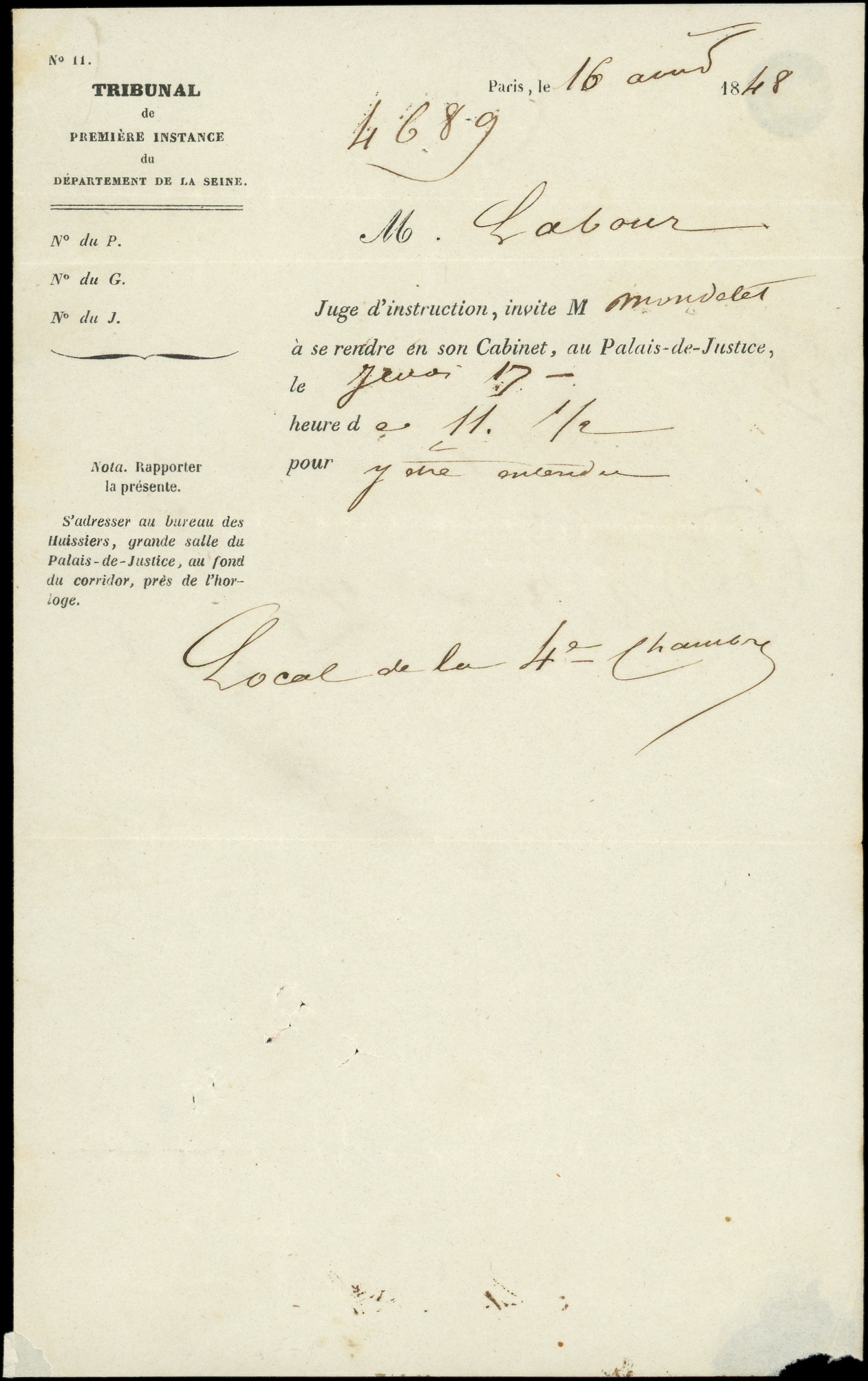 sur LAC du 16/8/48, mention "Commission d'Instruction", TB (Image) (Image2)
