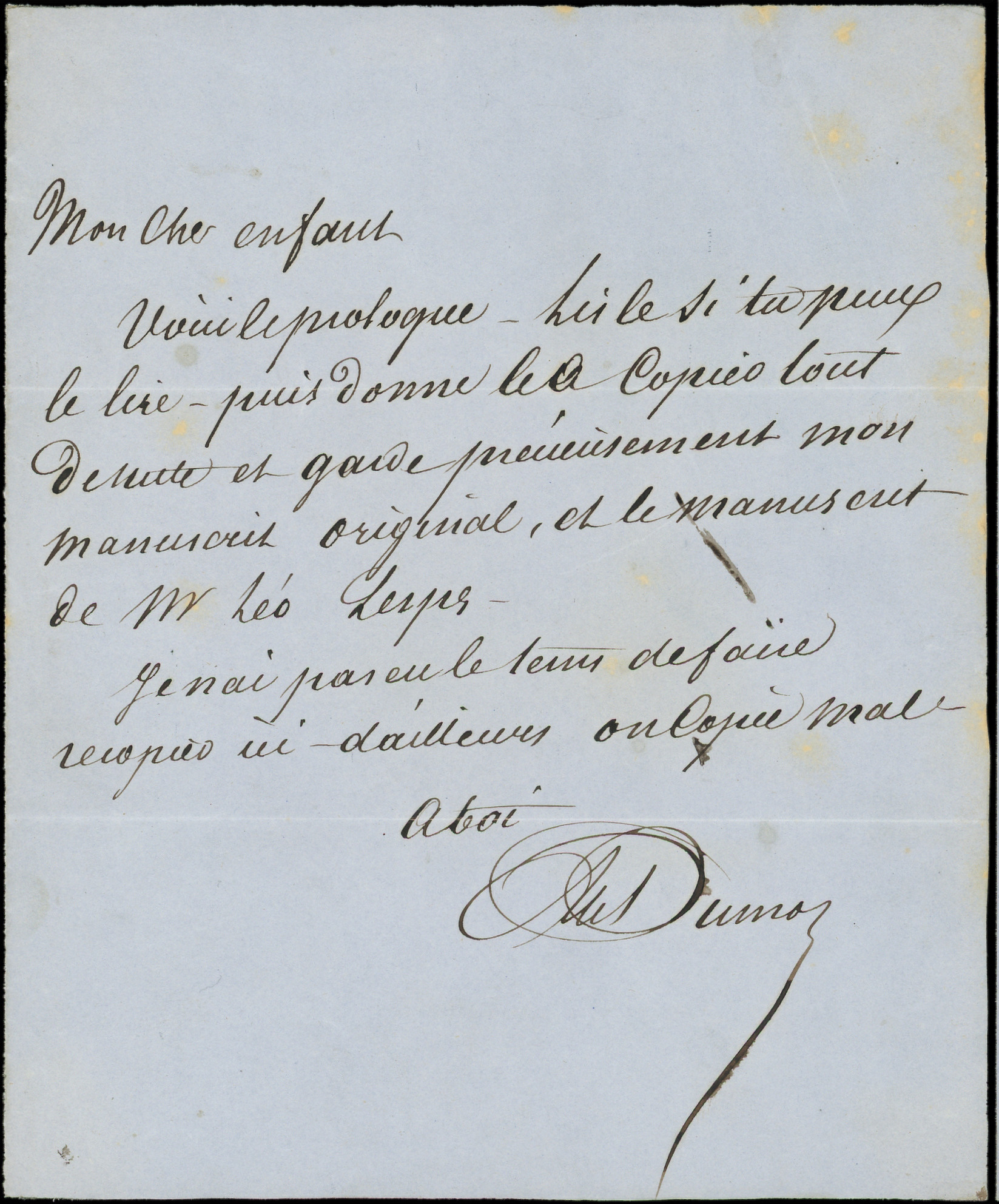 autographes signées ALEXANDRE DUMAS père et ALEXANDRE DUMAS fils, bel ensemble, TB (Image)