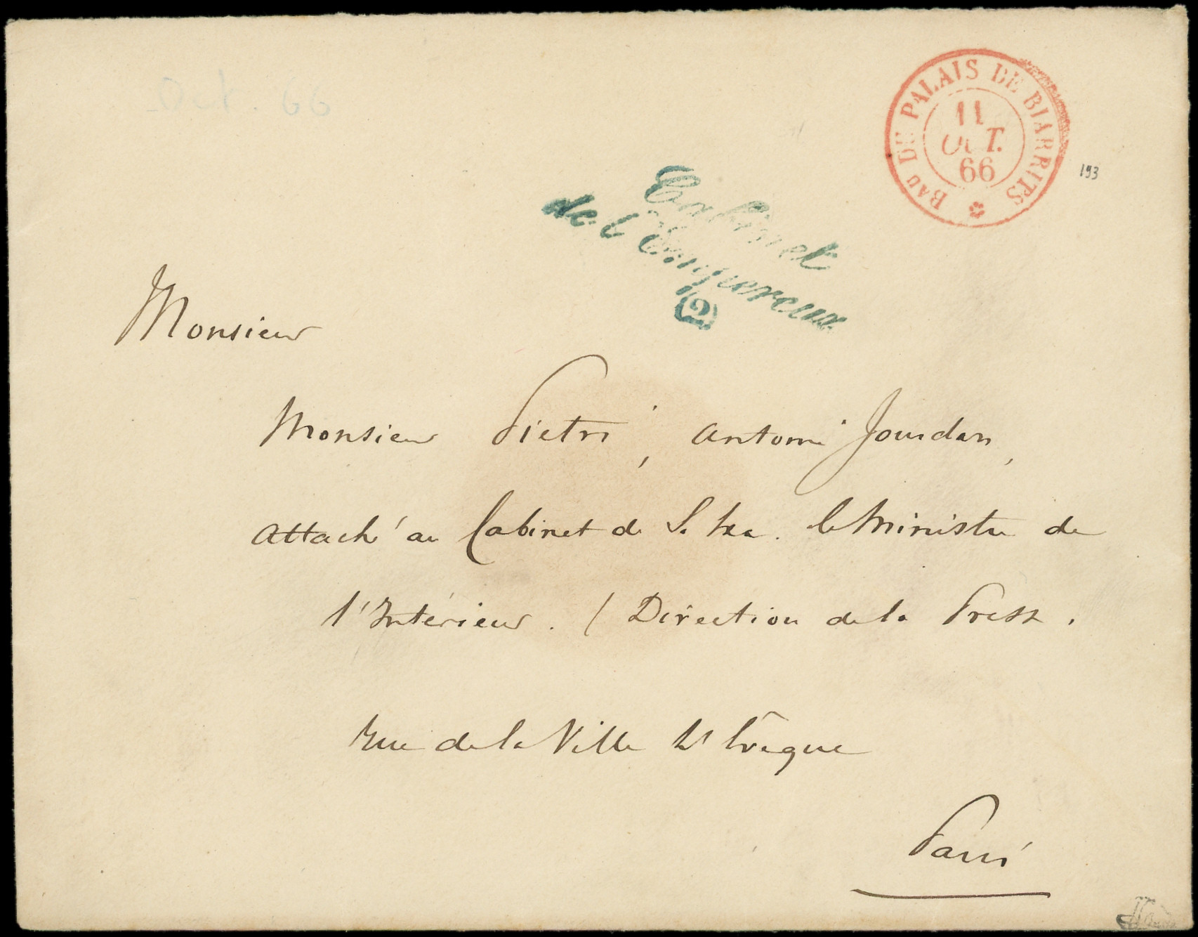 PALAIS DE BIARRITS 11/10/66 s. Env. avec sa lettre, franchise bleue Cabinet/de l'Empereur/(2), TTB. J (Image)