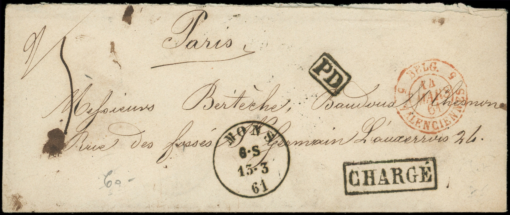 et càd rouge 5 BELG.5 VALENCIENNES 14/3 s. Env. CHARGE et Taxée, arr. PARIS 14/3, TB (Image)