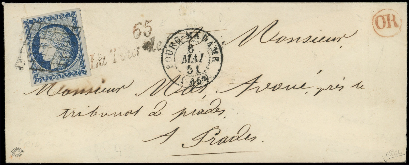 marges, obl. GRILLE s. Env., càd T15 BOURG-MADAME 6/5/51, Cursive rougeâtre 65/LA TOUR DE CAROL et OR en ROUGE, TTB. C (Image)
