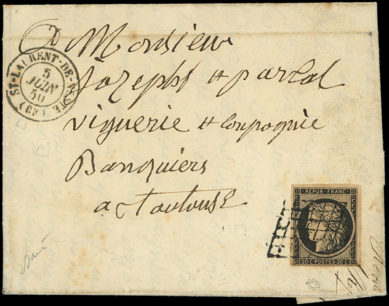 obl. PC 1851 s. LAC, càd T15 MAMERS 21/6/54, frappes légères, TB/TTB. C (Image)