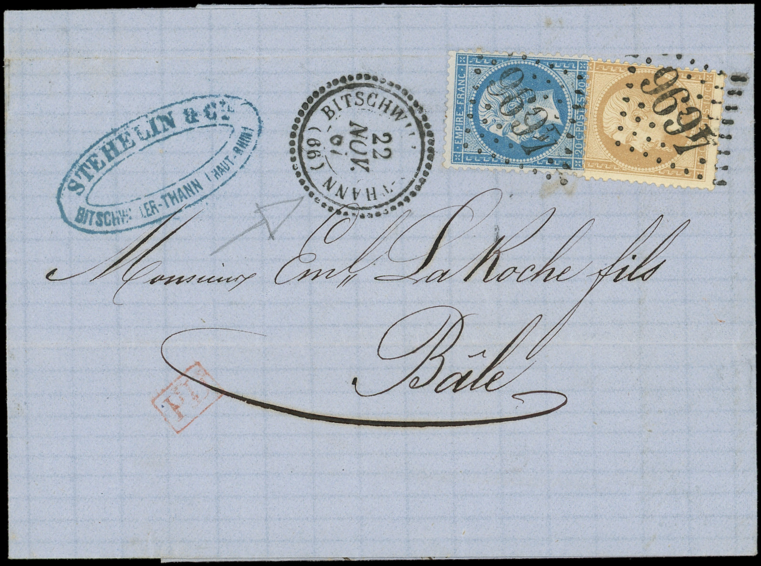 et 20c. obl. GC 4696 s. LAC, càd T22 BITSCHWILLER-THANN 22/11/67, arr. BASEL, Superbe (Image) (Image2)