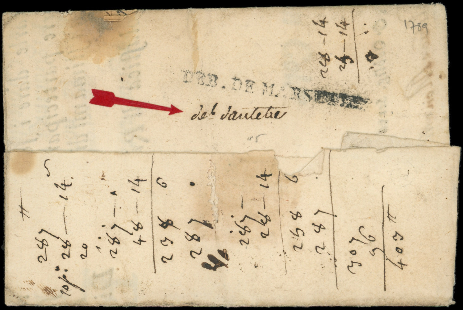 "deb dantibe" sur LAC de Rome de 1789 et MP DEB. DE MARSEILLE, R et TB (Image)