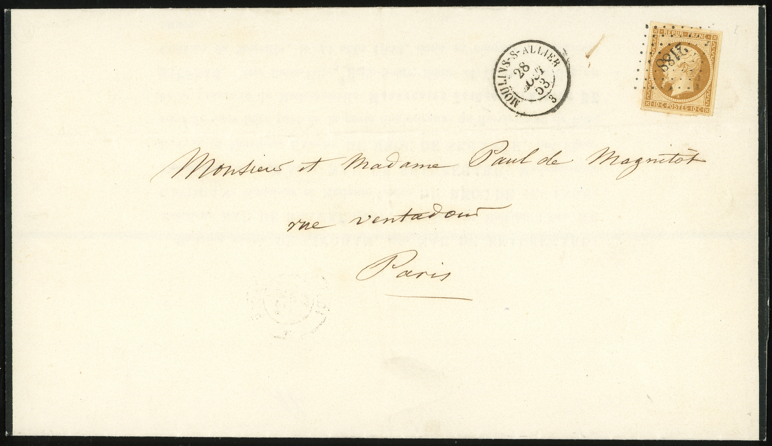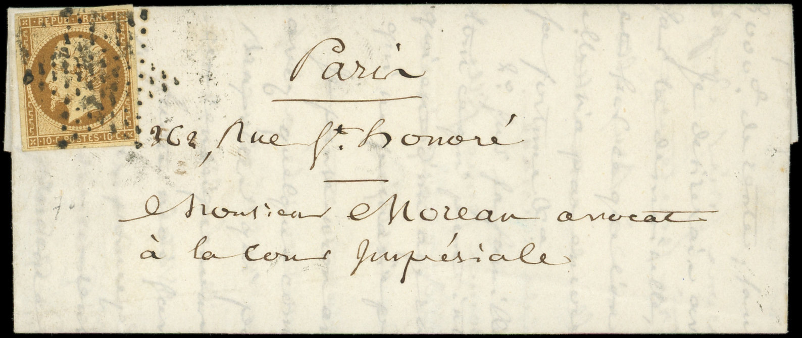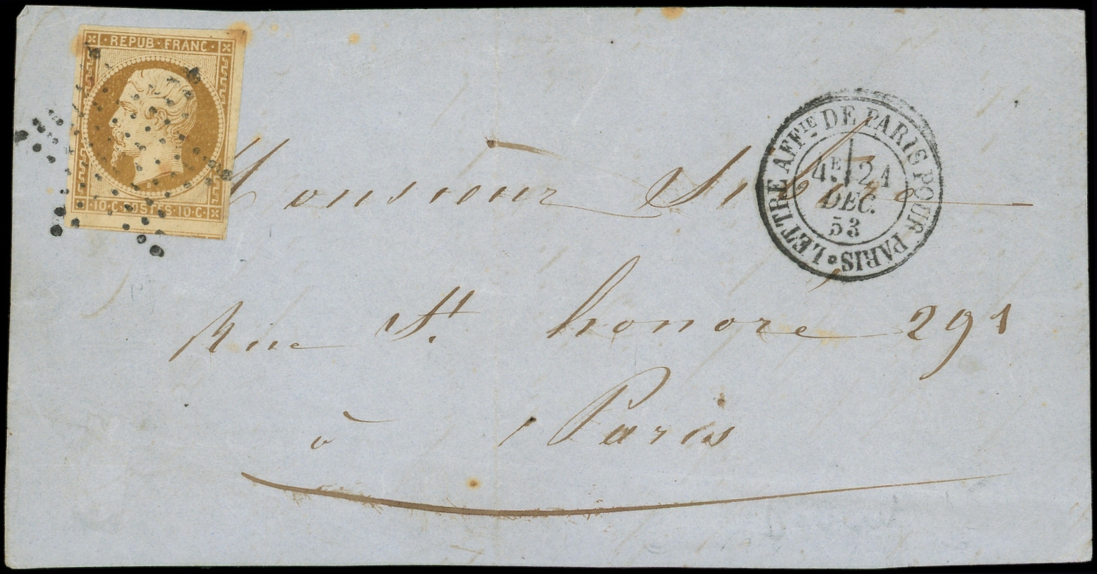 bistre-jaune, voisin en bas, obl. ETOILE s. Devant, càd Lettre affrie de PARIS POUR PARIS 24/12/53, TTB (Image)