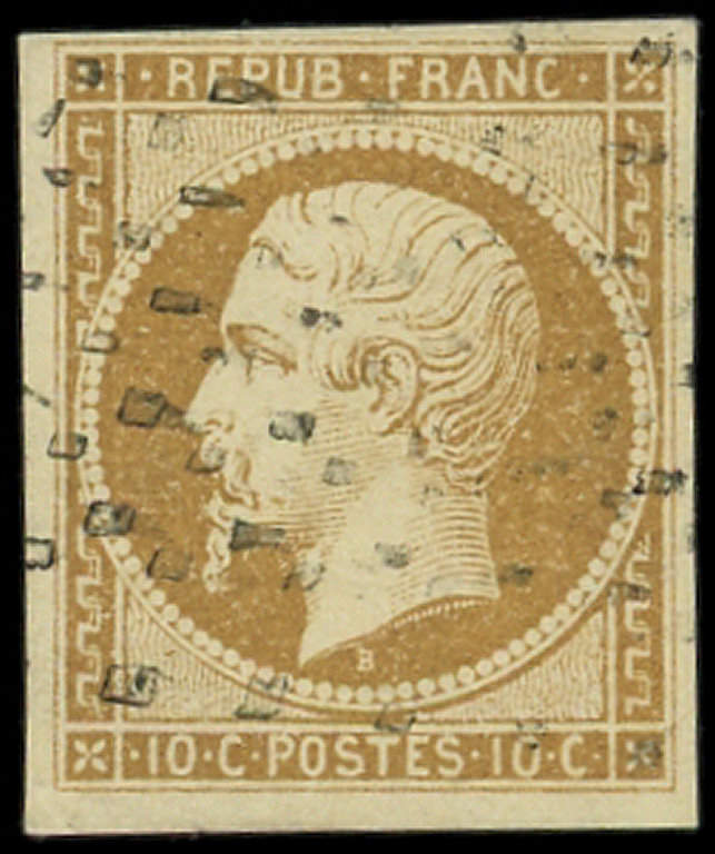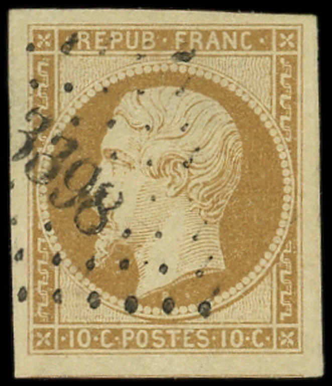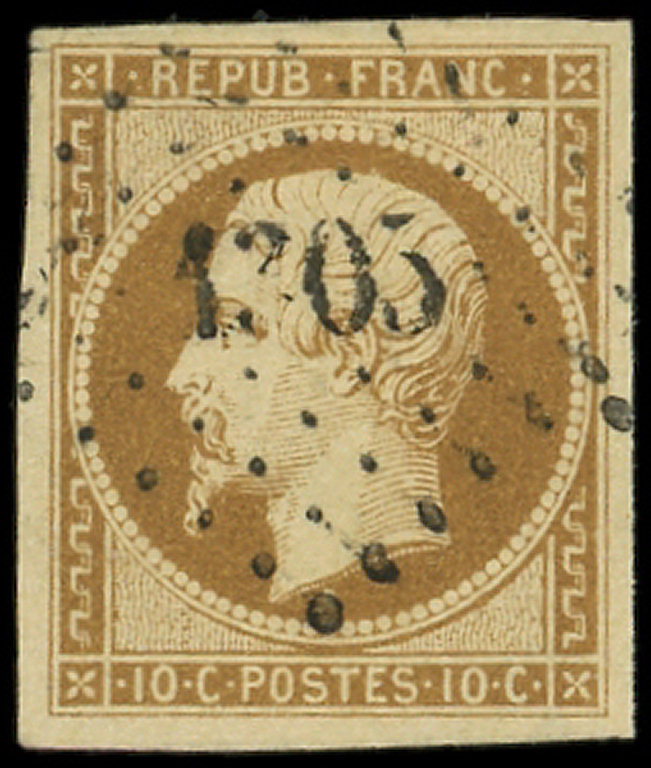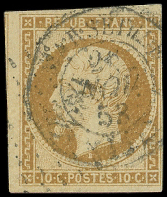 bistre-jaune, inf. trou d'épingle, obl. càd MARSEILLE 11/53, oblitérations Rare sur ce t., aspect TB (Image)