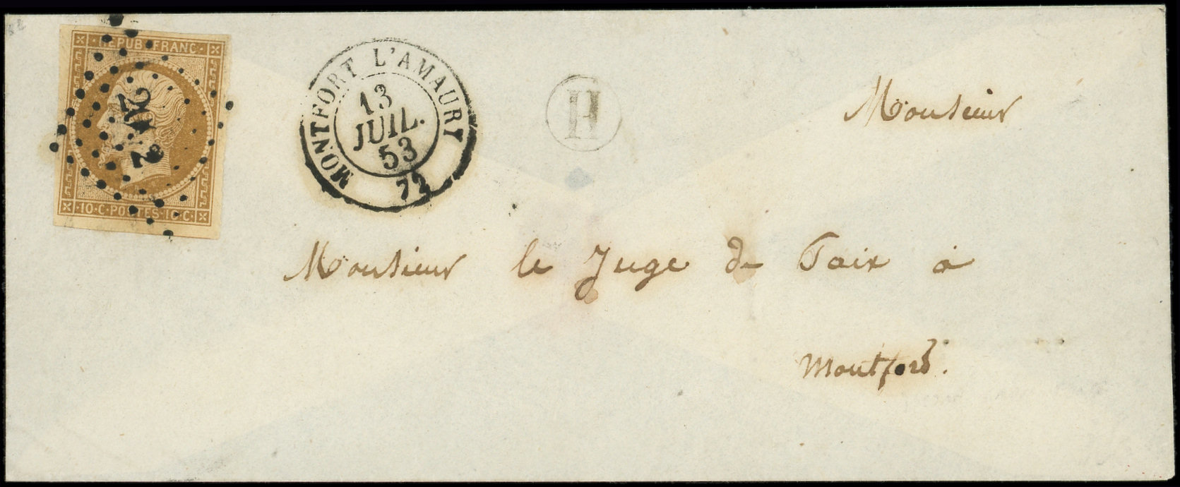 bistre-brun, obl. PC 2092 s. Env., càd T15 MONTFORT L'AMAURY 13/7/53 et Boite H, TTB (Image)