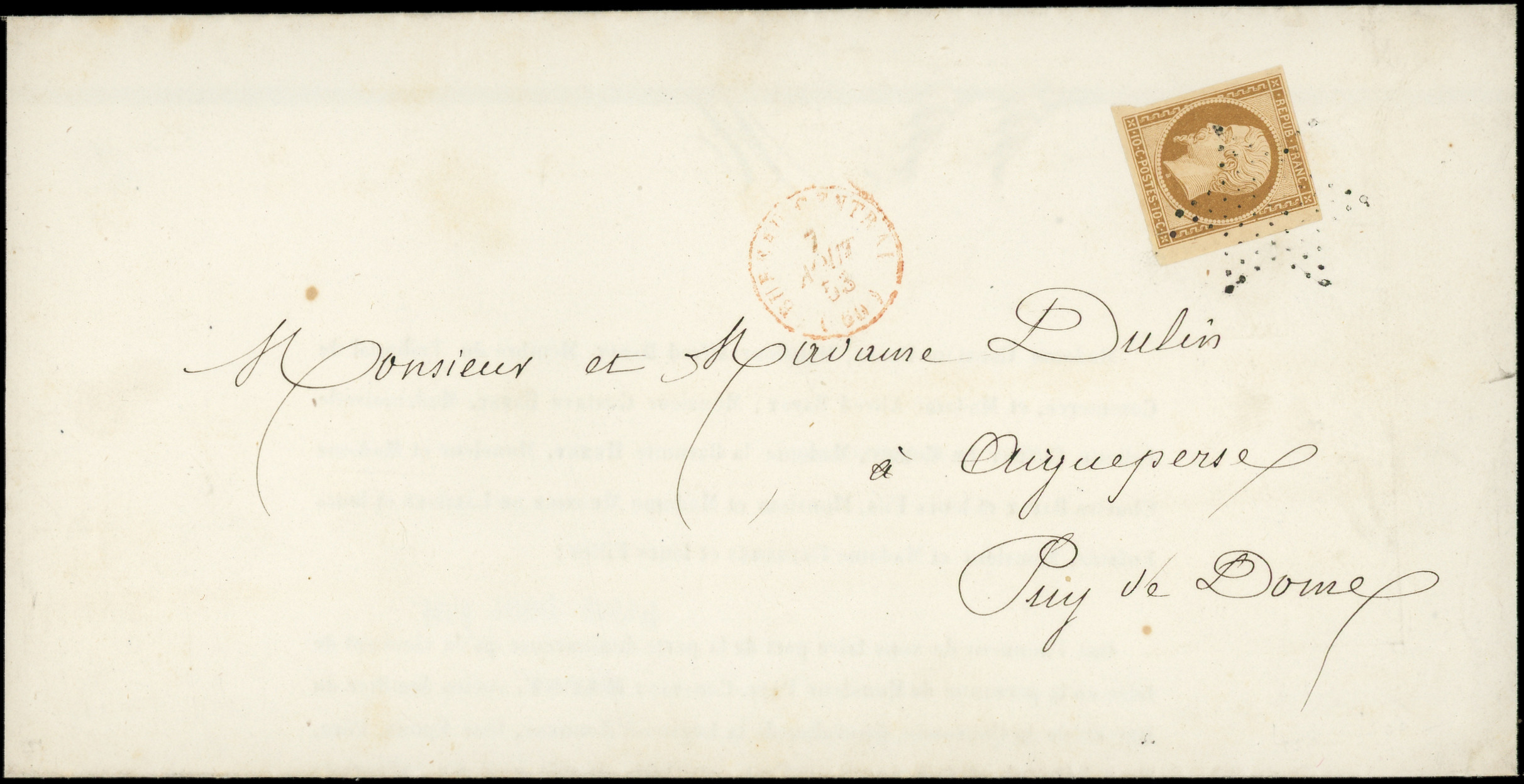 bistre-jaune, obl. ETOILE s. Faire-part, càd rouge BUREAU CENTRAL 7/8/53, combinaison Rare et TTB (Image)